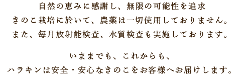 12日間育成管理されたきのこは、仕込みから4ヵ月の工程を通り収穫適期となります。傘に傷がつかないよう一株ずつゆっくりと丁寧に収穫を行います。