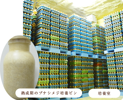 種菌を稙菌したビンはすぐに温度、湿度、二酸化炭素濃度が管理された培養室へと運ばれます。