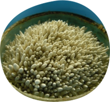 12日後の培地の表面には、ビン中の栄養分を糧に小さな芽(きのこ)が形成されます。この芽が成長することできのことなります。