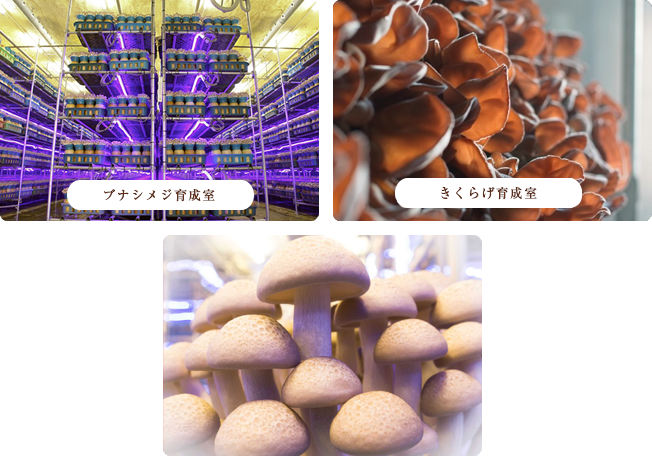 育成は芽だしで形成した小さなきのこを成長させる工程です。収穫作業を行いやすくするため小さい時にキャップをかけさらに12日間管理し収穫を待ちます。